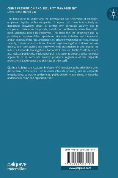 This book seeks to understand the investigation and settlement of employer/employee disputes within companies. It argues that there is effectively no democratic knowledge about, or control over, corporate security, due to companies' preference for private, out-of-court settlements when faced with norm violations raised by employees. This book fills the knowledge gap by providing an overview of the corporate security sector including legal frameworks and an analysis of the role and powers of private investigative services, inhouse security, forensic accountants and forensic legal investigators. It draws on close observation, case studies and interviews with practitioners in and around the industry. Corporate Investigations, Corporate Justice and Public-Private Relations also looks at public-private relationships in this sector to propose policy remedies applicable to all corporate security providers, regardless of the disparate professional backgrounds and skill-sets of their staff