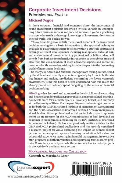 This book is intended for both practising managers who require a thorough knowledge of the principles of making investment decisions in the real world and for students undertaking financial courses whether at undergraduate, MBA or professional levels.
