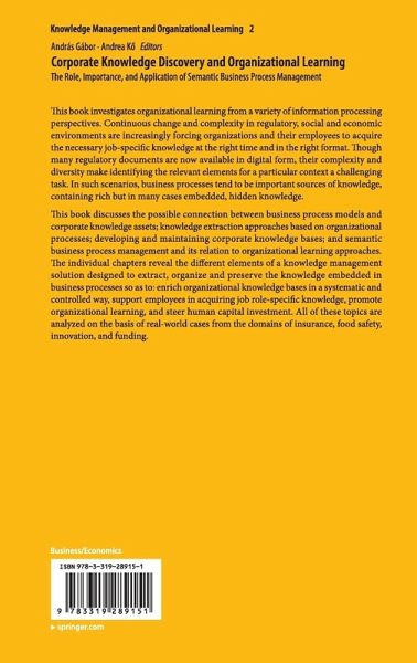 This book investigates organizational learning from a variety ofinformation processing perspectives. Continuous change and complexity inregulatory, social and economic environments are increasingly forcingorganizations and their employees to acquire the necessary job-specificknowledge at the right time and in the right format. Though many regulatorydocuments are now available in digital form, their complexity and diversitymake identifying the relevant elements for a particular context a challenging task.In such scenarios, business processes tend to be important sources ofknowledge, containing rich but in many cases embedded, hidden knowledge.