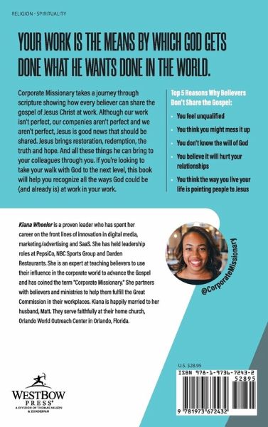 Corporate Missionary engages you with important and big questions regarding the Great Commission and your work life. The book weaves together stories of the authors career and how she began to overcome doubt, fear and pride to share the gospel with her colleagues and how you can too.