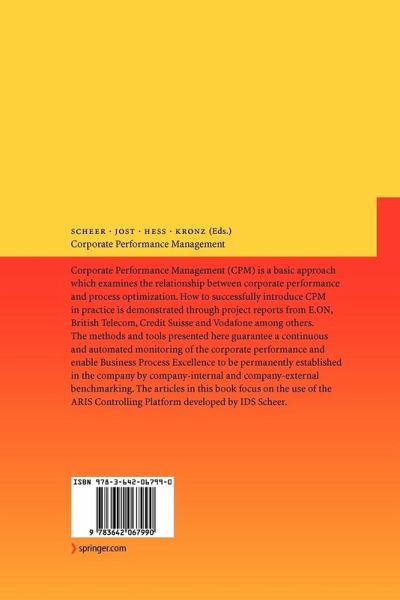 Corporate Performance Management (CPM) is a basic approach which examines the relationship between corporate performance and process optimization. How to successfully introduce CPM in practice is demonstrated through project reports from E.ON, British Telecom, Credit Suisse and Vodafone among others. The methods and tools presented here guarantee a continuous and automated monitoring of the corporate performance and enable Business Process Excellence to be permanently established in the company by company-internal and company-external benchmarking. The articles in this book focus on the use of the ARIS Controlling Platform developed by IDS Scheer.