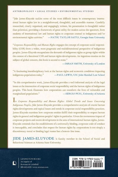 In Corporate Responsibility and Human Rights, Jide James-Eluyode highlights key issues concerning the emergence of a normative framework for the human rights of indigenous peoples under international law and depicts its impact on corporate social responsibility practices.
