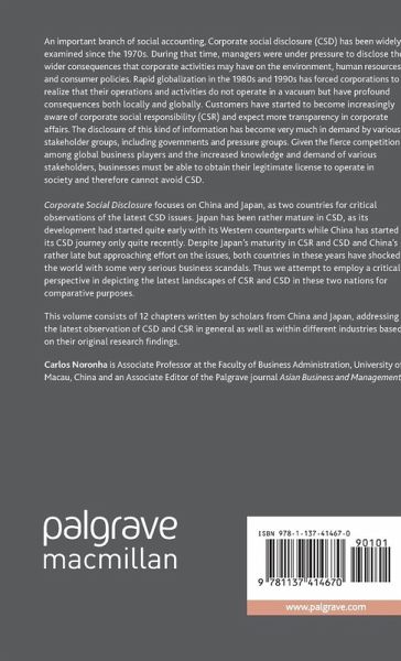 Corporate Social Disclosure focuses on China and Japan as two countries for critical observations of the latest CSD issues. This volume consists of 12 chapters written by scholars from these two countries, addressing the latest observation of CSD in general as we as in different industries based on their latest research findings.