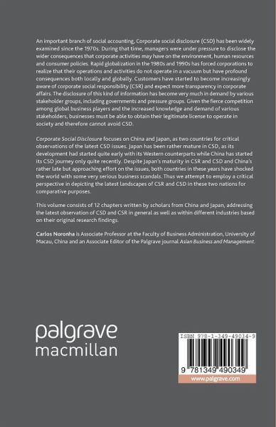 Corporate Social Disclosure focuses on China and Japan as two countries for critical observations of the latest CSD issues. This volume consists of 12 chapters written by scholars from these two countries, addressing the latest observation of CSD in general as we as in different industries based on their latest research findings.