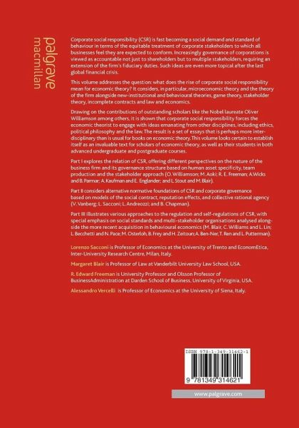 Corporate social responsibility is examined in this book as multi-stakeholder approach to corporate governance. This volume outlines neo-institutional and stakeholder theories of the firm, new rational choice and social contract normative models, self regulatory and soft law models, and the advances from behavioural economics.