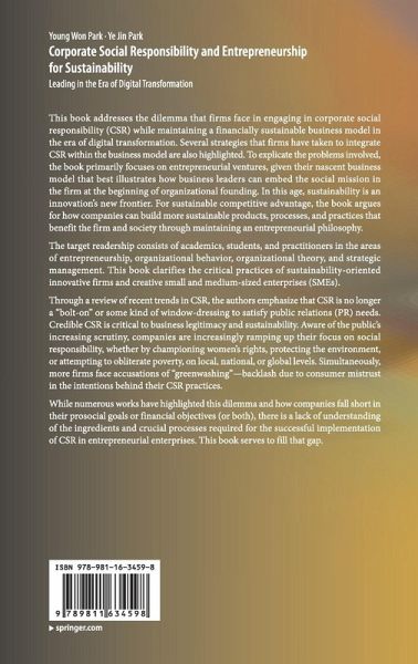 This book addresses the dilemma that firms face in engaging in corporate social responsibility (CSR) while maintaining a financially sustainable business model in the era of digital transformation. Several strategies that firms have taken to integrate CSR within the business model are also highlighted. To explicate the problems involved, the book primarily focuses on entrepreneurial ventures, given their nascent business model that best illustrates how business leaders can embed the social mission in the firm at the beginning of organizational founding. In this age, sustainability is an innovation's new frontier. For sustainable competitive advantage, the book argues for how companies can build more sustainable products, processes, and practices that benefit the firm and society through maintaining an entrepreneurial philosophy.