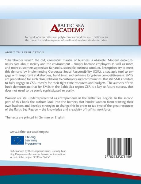 Vol. 10 of the BSA - Series"Shareholder value", the old, egocentric mantra of business is obsolete. Modern entrepreneurs care about society and the environment - simply because employees as well as more and more customers appreciate fair and sustainable business conduct. Enterprises try to meet this demand by implementing Corporate Social Responsibility (CSR), a strategic tool to engage with important stakeholders, build trust and enhance long-term competitiveness. SMEs are predestined for such close relations to customers and communities. But still SMEs hesitate to fully engage in CSR, mostly for their tight time resources and budgets. The authors of this book demonstrate that for SMEs in the Baltic Sea region CSR is a key to future success, that does not need to be overly sophisticated or costly. Women are still underrepresented as entrepreneurs in the Baltic Sea Region. In the second part of this book the authors look into the barriers that hinder women from starting their ownbusiness and develop strategies to change this in order to tap two of the great resources of the Baltic Sea Region - the knowledge and creativity of half its workforce.The texts in the book are printed in German or English.