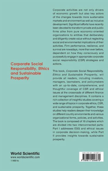 Corporate activities are not only drivers of economic growth but also key actors of the changes towards more sustainable markets and environment as well as inclusive development. Significant efforts have recently been devoted to transform private and public firms alike from pure economic-oriented organizations to entities that deliberately and diligently create value without neglecting social and environmental implications of their activities. Firm performance, resilience, and survival are nowadays, more than ever before, dependent on how they consciously and purposefully engage in appropriate corporate social responsibility (CSR) strategies and actions. This book, Corporate Social Responsibility, Ethics and Sustainable Prosperity, will provide all readers, including investors, managers, lawmakers, and policymakers with an up-to-date, comprehensive, and thoughtful coverage of CSR and ethical issues at the crossroads of different finance and management disciplines. It contains a rich collection of insightful studies covering a wide range of topics in corporate ethics, CSR, and sustainable prosperity. Together, these studies help readers deepen their knowledge on different country environments and various organizational forms, policies, and activities. The book is composed of 16 chapters which are divided into two interconnected parts: Part I addresses ESG and ethical issues in corporate decision-making, while Part II provides insights towards sustainable prosperity.