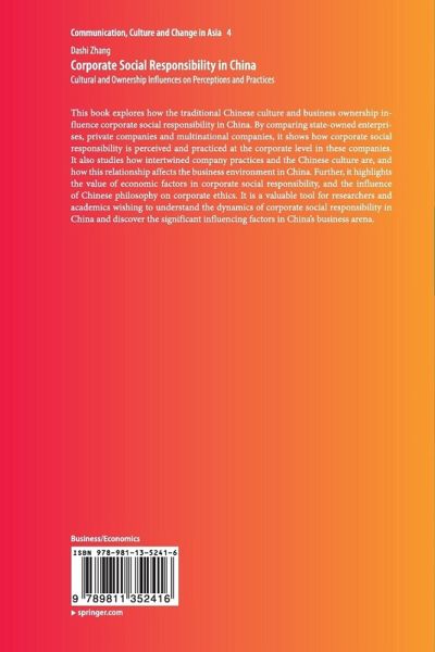 This book explores how the traditional Chinese culture and business ownership influence corporate social responsibility in China. By comparing state-owned enterprises, private companies and multinational companies, it shows how corporate social responsibility is perceived and practiced at the corporate level in these companies. It also studies how intertwined company practices and the Chinese culture are, and how this relationship affects the business environment in China. Further, it highlights the value of economic factors in corporate social responsibility, and the influence of Chinese philosophy on corporate ethics. It is a valuable tool for researchers and academics wishing to understand the dynamics of corporate social responsibility in China and discover the significant influencing factors in China's business arena.