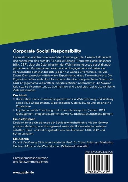 Unternehmen werden zunehmend den Erwartungen der Gesellschaft gerecht und engagieren sich proaktiv für soziale Belange (Corporate Social Responsibility: CSR). Über die Determinanten der Wahrnehmung sowie der Wirkungsprozesse und Konsequenzen eines solchen Engagements auf Seiten der Konsumenten bestehen bis dato jedoch nur wenige Erkenntnisse. Hai Van Duong Dinh analysiert mittels eines Experimentes diese Themenbereiche. Die Ergebnisse liefern wertvolle Informationen für einen zielgerichteten Einsatz des CSREngagements und eröffnen marktorientierten Unternehmen die Möglichkeit, soziale Verantwortung zu übernehmen und dabei gleichzeitig ökonomische Ziele anzustreben.