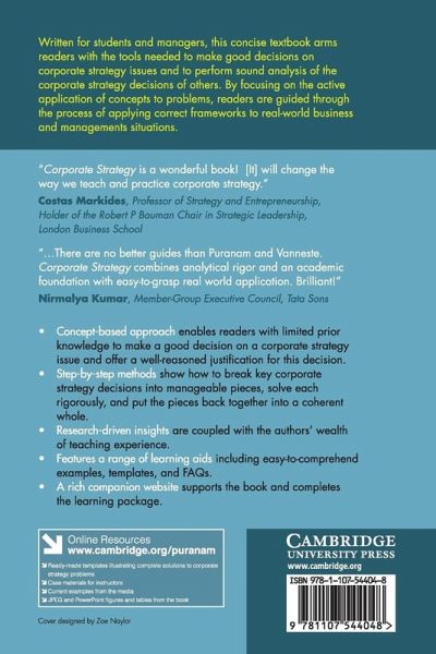 This concise textbook arms students and managers with the tools needed to make good decisions on corporate strategy issues and to perform sound analysis of the corporate strategy decisions of others. A rich companion website with downloadable tools, case materials and current examples from the media is also included.
