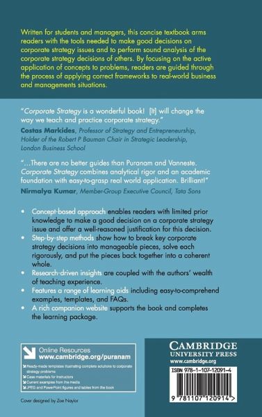 Many companies are not single businesses but a collection of businesses with one or more levels of corporate management. Written for managers, advisors and students aspiring to these roles, this book is a guide to decision-making in the domain of corporate strategy. It arms readers with research-based tools needed to make good corporate strategy decisions and to assess the soundness of the corporate strategy decisions of others. Readers will learn how to do the analysis for answering questions such as 'Should we pursue an alliance or an acquisition to grow?', 'How much should we integrate this acquisition?' and 'Should we divest this business?'. The book draws on the authors' wealth of research and teaching experience at INSEAD, London Business School and University College London. A range of learning aids, including easy-to-comprehend examples, decision templates and FAQs, are provided in the book and on a rich companion website.