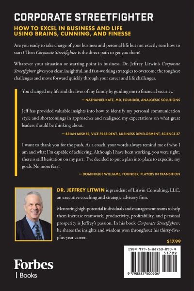 CORPORATE STREETFIGHTER HOW TO EXCEL IN BUSINESS AND LIFE USING BRAINS, CUNNING, AND FINESSE Are you ready to take charge of your business and personal life, but not exactly sure how to start? Then Corporate Streetfighter is the direct path to get you there! Whatever your situation or starting point in business, Dr. Jeffrey Litwin's Corporate Streetfighter gives you clear, insightful and fast-working strategies to overcome the toughest challenges and move forward quickly through your career and life challenges.