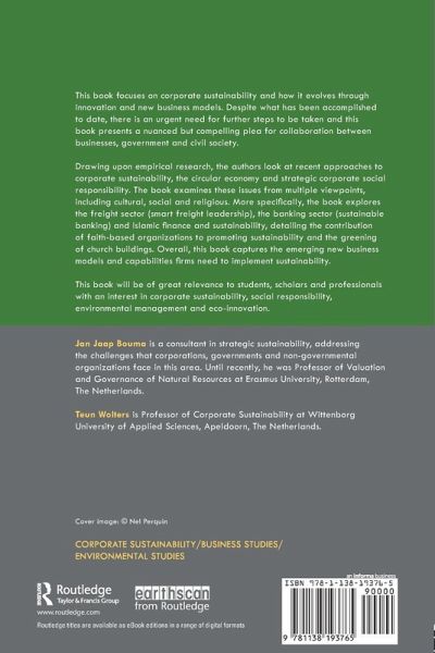 This book focuses on corporate sustainability and how it evolves through innovation and new business models. Despite what has been accomplished to date, there is an urgent need for further steps to be taken and this book presents a nuanced but compelling plea for collaboration between businesses, government and civil society. Drawing upon empirical research, the authors look at recent approaches to corporate sustainability, the circular economy and strategic corporate social responsibility. The book examines these issues from multiple viewpoints, including cultural, social and religious. More specifically, the book explores the freight sector (smart freight leadership), the banking sector (sustainable banking) and Islamic finance and sustainability, detailing the contribution of faith-based organizations to promoting sustainability and the greening of church buildings. Overall, this book captures the emerging new business models and capabilities firms need to implement sustainability. This book will be of great relevance to students, scholars and professionals with an interest in corporate sustainability, social responsibility, environmental management and eco-innovation.