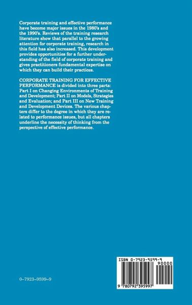 Corporate training and effective performance have become major issues in the 1980s and '90s. Reviews of the training research literature show that, parallel to the growing attention to corporate training, research has also increased in the field, giving a better understanding of the subject and providing fundamental expertise on which trainers can build. The contributions to the book differ in the degree to which they are related to performance issues, but all chapters underline the necessity of thinking from the perspective of effective performance.