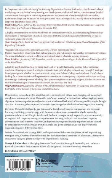 A truly in-depth and thought-provoking study and yet a really fascinating journey full of surprising revelations, linking corporate learning to corporate strategy in a highly coherent way through 3 strategy-based paradigms in which a corporate university may exist: School, College and Academy. If you've been looking for a comprehensive and representative overview on contemporary corporate universities evolving into strategic business partners who help their parent companies not only to support but also co-create and reinvent their strategies to meet their challenges, this book is a real find!