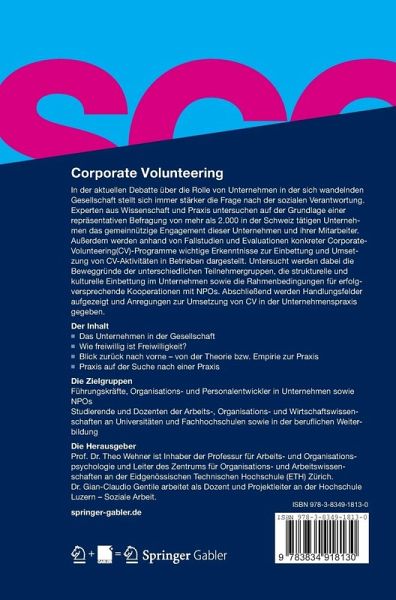 In der aktuellen Debatte über die Rolle von Unternehmen in der sich wandelnden Gesellschaft stellt sich immer stärker die Frage nach der sozialen Verantwortung. Experten aus Wissenschaft und Praxis untersuchen auf der Grundlage einer repräsentativen Befragung von mehr als 2.000 in der Schweiz tätigen Unternehmen das gemeinnützige Engagement dieser Unternehmen und ihrer Mitarbeiter. Außerdem werden anhand von Fallstudien und Evaluationen konkreter Corporate-Volunteering(CV)-Programme wichtige Erkenntnisse zur Einbettung und Umsetzung von CV-Aktivitäten in Betrieben dargestellt. Untersucht werden dabei die Beweggründe der unterschiedlichen Teilnehmergruppen, die strukturelle und kulturelle Einbettung im Unternehmen sowie die Rahmenbedingungen für erfolgversprechende Kooperationen mit NPOs. Abschließend werden Handlungsfelder aufgezeigt und Anregungen zur Umsetzung von CV in der Unternehmenspraxis gegeben.