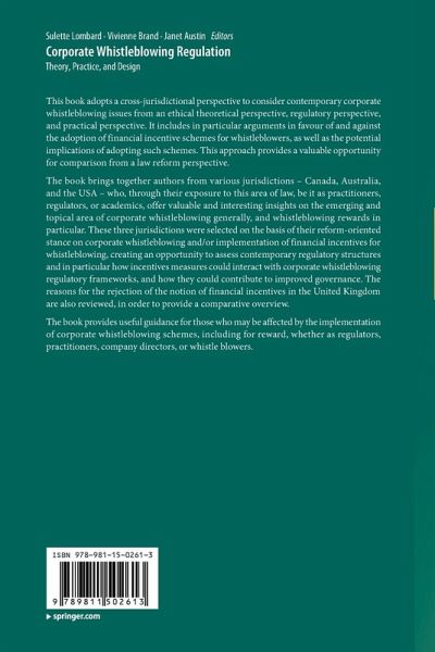 This book adopts a cross-jurisdictional perspective to consider contemporary corporate whistleblowing issues from an ethical theoretical perspective, regulatory perspective, and practical perspective. It includes in particular arguments in favour of and against the adoption of financial incentive schemes for whistleblowers, as well as the potential implications of adopting such schemes. This approach provides a valuable opportunity for comparison from a law reform perspective.