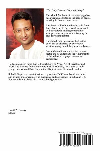 "The Only Book on Corporate Yoga" This simplified book of corporate yoga has been written considering the need of people working in the corporate sector. This book will help in relieving pain from lower back, neck, fingers and forearms. It will also help in making eye muscles stronger, releasing stress and keeping the blood pressure normal. About the Author: Subodh Gupta has been interviewed by various TV Channels and his views and articles appear regularly in magazines and newspapers in India and UK.