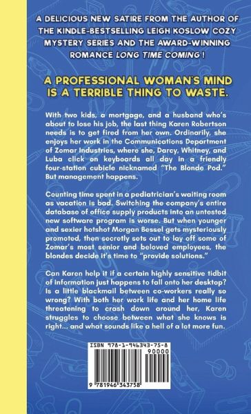 The mainstream humor debut of Edie Claire, author of the USA-Today bestselling Leigh Koslow mystery series! A professional woman's mind is a terrible thing to waste. With two kids, a mortgage, and a husband who's about to lose his job, the last thing Karen Robertson needs is to get fired from her own. Ordinarily, she enjoys her work in the Communications Department of Zomar Industries, where she, Darcy, Whitney, and Luba click on keyboards all day in a friendly four-station cubicle nicknamed "The Blonde Pod." But management happens. Counting time spent in a pediatrician's waiting room as vacation is bad. Switching the company's entire database of office supply products into an untested new software program is worse. But when younger and sexier hotshot Morgan Bessel gets mysteriously promoted, then secretly sets out to lay off some of Zomar's most senior and beloved employees, the blondes decide it's time to "provide solutions." Can Karen help it if a certain highly sensitive tidbit of information just happens to fall onto her desktop? Is a little blackmail between co-workers really so wrong? With both her work life and her home life threatening to crash down around her, Karen struggles to choose between what she knows is right... and what sounds like a hell of a lot more fun.