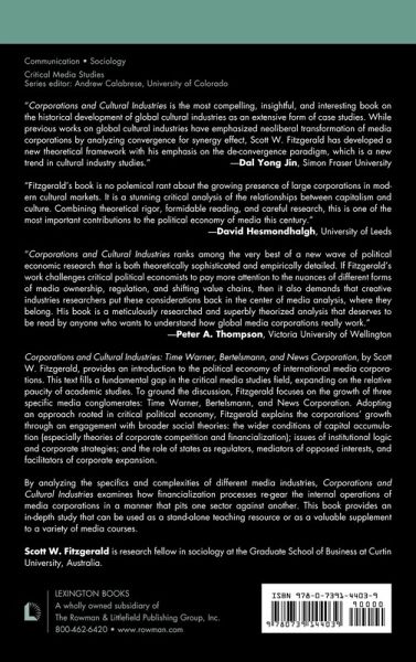 Corporations and Cultural Industries: Time Warner, Bertelsmann, and News Corporation, by Scott Warren Fitzgerald, provides an introduction to the political economy of international media corporations. This text fills a fundamental gap in the critical media studies field, expanding on the relative paucity of academic studies. To ground the discussion, Fitzgerald focuses on the growth of three specific media conglomerates: Time Warner, Bertelsmann and News Corporation. Adopting an approach rooted in critical political economy, the book explains the corporations' growth through an engagement with broader social theories: the wider conditions of capital accumulation (especially theories of corporate competition and financialization); issues of institutional logic and corporate strategies; and the role of states as regulators, mediators of opposed interests, and facilitators of corporate expansion. The first section presents debates in social theory, addressing issues that pertain to cultural industries and dimensions in which they both challenge and extend these wider social theories. The second section presents detailed case studies of the three contemporary media 'mega companies' across the range of operations they coordinate, both within and outside the cultural industries. By analyzing the specifics and complexities of different media industries, Corporations and Cultural Industries examines how financialization processes re-gear the internal operations of media corporations in a manner that pits one sector against another. This book provides an in-depth study that can be used as stand-alone teaching resources or as a valuable supplement to a variety of media courses.