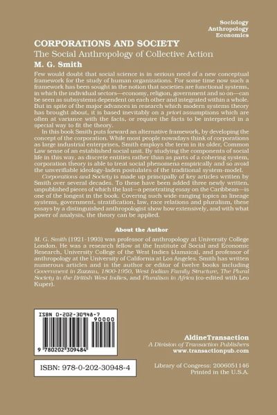 Few would doubt that social science is in serious need of a new conceptual framework for the study of human organizations. For some time now such a framework has been sought in the notion that societies are functional systems, in which the individual sectors--economy, religion, government and so on--can be seen as subsystems dependent on each other and integrated within a whole. But in spite of the major advances in research which modern systems theory has brought about, it is based inevitably on a priori assumptions which are often at variance with the facts, or require the facts to be interpreted in a special way to fit the theory. In this book Smith puts forward an alternative framework, by developing the concept of the corporation. While most people nowadays think of corporations as large industrial enterprises, Smith employs the term in its older, Common Law sense of an established social unit. By studying the components of social life in this way, as discrete entities rather than as parts of a cohering system, corporation theory is able to treat social phenomena empirically and so avoid the unverifiable ideology-laden postulates of the traditional system-model. Corporations and Society is made up principally of key articles written by Smith over several decades. To these have been added three newly written, unpublished pieces of which the last--a penetrating essay on the Caribbean--is one of the longest in the book. Covering such wide-ranging topics as lineage systems, government, stratification, law, race relations and pluralism, these essays by a distinguished anthropologist show how extensively, and with what power of analysis, the theory can be applied.