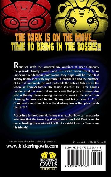 Reunited with the armored toy warriors of Bear Company, Ten-year-old Timmy Barnes and his friend Anna travel to an important rendezvous point-one they hope will be their last. Timmy finally meets the mysterious General Leo and the members of Corps Command, the unit that leads the entire Dark Corps. But where is Timmy's father, famed scientist Dr. Peter Barnes, the creator of all the armored animal teams that protect Timmy? And who is the mysterious young man who arrives at the secret base claiming he was sent to find Timmy and bring Corps Command warnings about the Dark -- the shadowy forces that plan to rule the Earth? According to the General, Timmy is safe…but how can ANYONE be safe now that the towering shadow known as Total Dark is on the move, leading the armies of the Dark straight towards Timmy and his friends.
