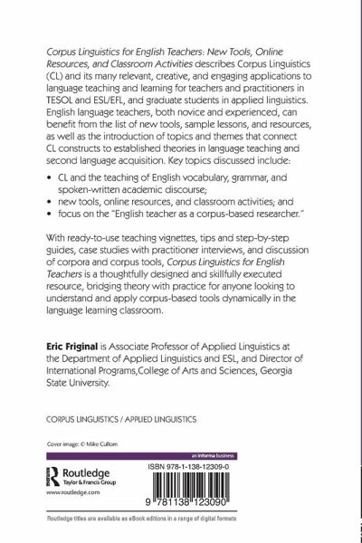 Corpus Linguistics for English Teachers: New Tools, Online Resources, and Classroom Activities describes Corpus Linguistics (CL) and its many relevant, creative, and engaging applications to language teaching and learning for teachers and practitioners in TESOL and ESL/EFL, and graduate students in applied linguistics. English language teachers, both novice and experienced, can benefit from the list of new tools, sample lessons, and resources as well as the introduction of topics and themes that connect CL constructs to established theories in language teaching and second language acquisition. Key topics discussed include: