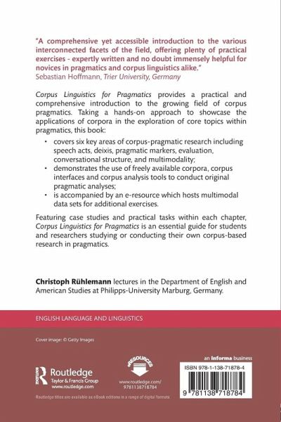 Featuring case studies and practical tasks within each chapter, Corpus Linguistics for Pragmatics is an essential guide for students and researchers studying or conducting their own corpus-based research in pragmatics.