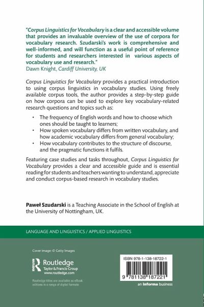Featuring case studies and tasks throughout, Corpus Linguistics for Vocabulary provides a clear and accessible guide and is essential reading for students and teachers wanting to understand, appreciate and conduct corpus-based research in vocabulary studies.