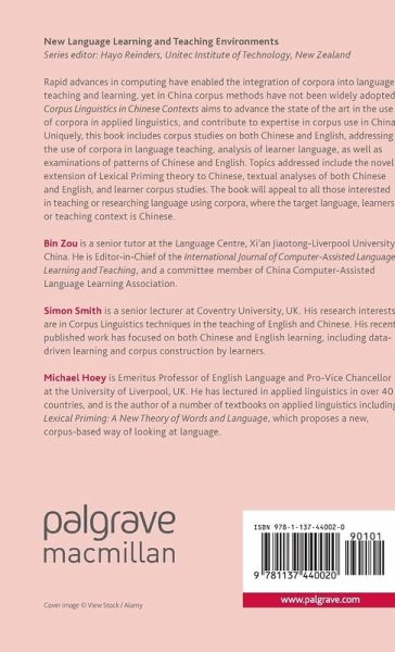 "Zou, Smith, and Hoey did a great job in compiling this volume of corpus-based and corpus-driven research on Chinese, English, and EFL. ... This volume also opens many new venues of corpus-based research. ... Corpus Linguistics in Chinese Contexts will be of great value for corpus linguists, applied linguists, EFL and CSL practitioners, as well as anyone interested in the theoretical and practical issues related to corpora." (Chunsheng Yang, LINGUIST List, linguistlist.org, March, 2016) "The volume under review was well written regarding the issues of corpus linguistics in China. ... this book is attempt to offer the data regarding current trends of some important issues of theory, tools and applications in corpus linguistic studies in China in a unique way. ... the book is very informative and provides valuable additional insights to the growing literature on corpus linguistics, in particular, the new development in China." (Qiurong Zhao, Chinese Language and Discourse, Vol.7 (1), 2016)