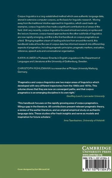 Corpus linguistics is a long-established method which uses authentic language data, stored in extensive computer corpora, as the basis for linguistic research. Moving away from the traditional intuitive approach to linguistics, which used made-up examples, corpus linguistics has made a significant contribution to all areas of the field. Until very recently, corpus linguistics has focused almost exclusively on syntax and the lexicon; however corpus-based approaches to the other subfields of linguistics are now rapidly emerging, and this is the first handbook on corpus pragmatics as a field. Bringing together a team of leading scholars from around the world, this handbook looks at how the use of corpus data has informed research into different key aspects of pragmatics, including pragmatic principles, pragmatic markers, evaluation, reference, speech acts, and conversational organisation.