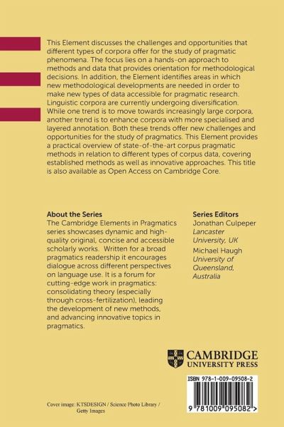 This Element discusses the challenges that different types of corpora offer for the study of pragmatic phenomena. The focus lies on a hands-on approach to methods and data that provides orientation for methodological decisions. We identify areas in which new methodological developments are needed in order to make new types of data accessible.