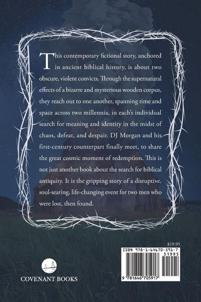This contemporary fictional story, anchored in ancient biblical history, is about two obscure, violent convicts. Through the supernatural effects of a bizarre and mysterious wooden corpus, they reach out to one another, spanning time and space across two millennia, in each’s individual search for meaning and identity in the midst of chaos, defeat, and despair. DJ Morgan and his first-century counterpart finally meet, to share the great cosmic moment of redemption. This is not just another book about the search for biblical antiquity. It is the gripping story of a disruptive, soul-searing, life-changing event for two men who were lost, then found.