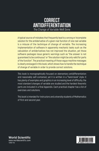 A typical source of mistakes that frequently lead to a wrong or incomplete solution for the antiderivative of a given real function of one real variable is a misuse of the technique of change of variable. The increasing implementation of software in apparently mechanic tasks such as the calculation of antiderivatives has not improved the situation, yet those software packages issue generic warnings such as "the answer's is not guaranteed to be continuous" or "the solution might be only valid for parts of the function". The practical meaning of those vague machine messages is clearly envisaged in this book, which shows how to handle the technique of change of variable in order to provide correct solutions. This book is monographically focused on elementary antidifferentiation and reasonably self-contained, yet it is written in a "hand-book" style: it has plenty of examples and graphics in an increasing level of difficulty; the most standard changes of variable are studied and the hardest theoretic parts are included in a final Appendix. Each practical chapter has a list of exercises and solutions. This book is intended for instructors and university students of Mathematics of first and second year.