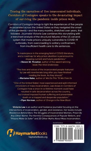 Tracing the narratives of five incarcerated individuals, Corridors of Contagion speaks to the devastating impact of surviving the pandemic inside prison walls. Corridors of Contagion brings to light the experiences of five people incarcerated across the United States as they navigate the onset of the pandemic-and the many months, stretched into years, that followed. Journalist Victoria Law combines this storytelling with a trenchant analysis of the structural failures of the US carceral system: failures that made prisons uniquely vulnerable to COVID-19 outbreaks, from overcrowding to solitary confinement, from insufficient healthcare to life sentences. The book portrays the horrors of continual lockdowns not in the comfort of one's own home, but in prisons where routine violence and chaos is made even more unimaginable by the complete lack of control over protection from a terrifying and lethal new virus. The pandemic provided an opportunity for lawmakers and policy makers to rethink the nation's addiction to perpetual punishment. Instead, US jails and prisons doubled down on punishment under the guise of pandemic protections. As a result, people behind bars experienced increased stress, mental health challenges, increased violence, and higher rates of deaths, many of which could have been prevented. While the pandemic emergency has been declared over, we are continuing to learn more about the extent of its destruction. Corridors of Contagion reminds readers about both the particular horrors experienced by people in cages and the continued role of the US as the world's prison nation.