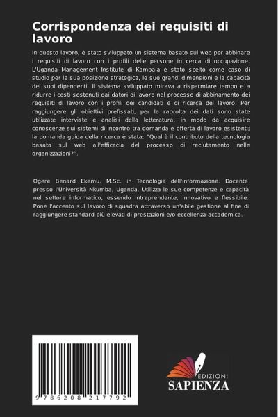 In questo lavoro, è stato sviluppato un sistema basato sul web per abbinare i requisiti di lavoro con i profili delle persone in cerca di occupazione. L'Uganda Management Institute di Kampala è stato scelto come caso di studio per la sua posizione strategica, le sue grandi dimensioni e la capacità dei suoi dipendenti. Il sistema sviluppato mirava a risparmiare tempo e a ridurre i costi sostenuti dai datori di lavoro nel processo di abbinamento dei requisiti di lavoro con i profili dei candidati e di ricerca del lavoro. Per raggiungere gli obiettivi prefissati, per la raccolta dei dati sono state utilizzate interviste e analisi della letteratura, in modo da acquisire conoscenze sui sistemi di incontro tra domanda e offerta di lavoro esistenti; la domanda guida della ricerca è stata: ¿Qual è il contributo della tecnologia basata sul web all'efficacia del processo di reclutamento nelle organizzazioni?¿.