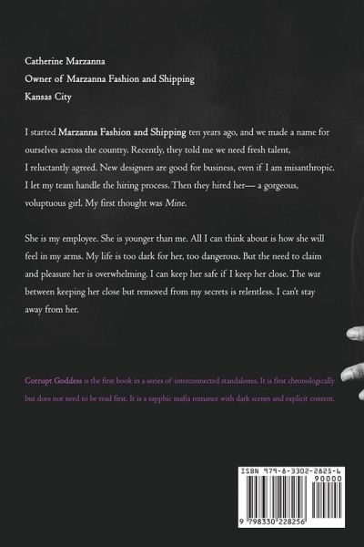 Catherine Marzanna Owner of Marzanna Fashion and Shipping Kansas City I started Marzanna Fashion and Shipping ten years ago, and we made a name for ourselves across the country. Recently, they told me we need fresh talent; I reluctantly agreed. New designers are good for business, even if I am misanthropic. I let my team handle the hiring process. Then they hired her- a gorgeous, voluptuous girl. My first thought was Mine. She is my employee. She is younger than me. All I can think about is how she will feel in my arms. My life is too dark for her, too dangerous. But the need to claim and pleasure her is overwhelming. I can keep her safe if I keep her close. The war between keeping her close but removed from my secrets is relentless. I can't stay away from her. Corrupt Goddess is the first book in a series of interconnected standalones. It is first chronologically but does not need to be read first. It is a sapphic mafia romance with dark scenes and explicit content.