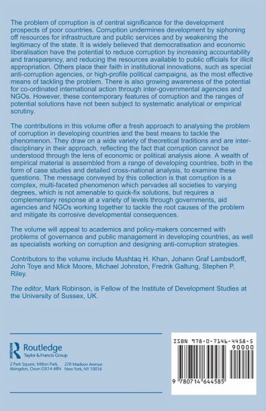 This volume of interdisciplinary contributions analyses the problem of corruption and draws on a wide variety of theoretical traditions and approaches, reflecting the fact that corruption cannot be understood through the lens of economic or political analysis alone. Development in Practice Bulletin of Science,Technology and Society "a fresh approach to analyzing the problem of corruption in developing countries...A wealth of empirical material...This book will appeal to academics and policy makers...as well as specialists working on corruption and designing anti-corruption strategies.