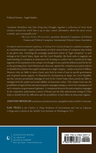 This volume considers corruption as a multidimensional, complex phenomenon in which various forms of corruption may overlap at any given time. Extending the seemingly paradoxical notion of "legal corruption" to such settings as the USA, Spain, and the Czech Republic, the book seeks to augment our understanding of corruption in democracies by focusing on conduct that is considered by large segments of the population to be corrupt even though they are not explicitly defined as such by the law or the governing elites. Such behaviors are not often captured by corruption perception indexes or identified by scholars who regard corruption as a single category—usually restricted to bribery. However, they are liable to incur a heavy price both in terms of trust in specific governments and of general system support. As illustrated by developments in Spain, the Czech Republic, and the corrosive presidential campaign of 2016 in the USA, these actions are liable to endanger both the quality and actual viability of democratic orders. This volume looks into the possibilities of legal reforms and anticorruption campaigns aiming to correct the consequences of such corruption on government legitimacy. A comparison between the anticorruption campaigns in the competitive authoritarian context of Russia and the fully authoritarian setting of China helps to identify both the difficulties and the possibilities of such efforts in democratic regimes.