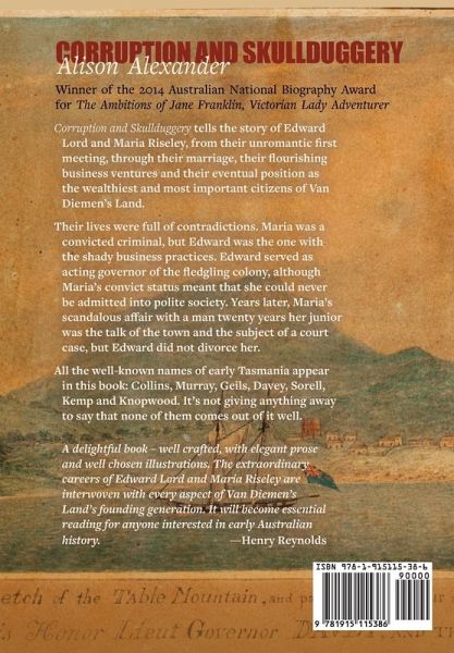 ¿This classic and colourfully illustrated work - reprinted to meet continuing wide demand - tells the story of much of the surprising and hidden shady criminal past of leading figures in early Tasmanian society. It tells the fascinating story of the officer and the convict, Edward Lord and Maria Riseley, who made a fortune in early Hobart by their business and networking skills - only to throw it away in the 1820s by extravagance and financial incompetence (Edward) and sexual infidelity (Maria). This is also the real story of early Hobart, not whitewashed as it usually is to show our glorious beginnings or because the gullible historian actually believes the official sources. Glossing over embarrassing scandals was the least of it. No one in Van Diemen's Land wanted to be there: they were all either sent there (convicts, guards, officials) or, as convicts claimed and was all too often the case, they fled from Britain only one step ahead of the law (free settlers). Everyone wanted to make a fortune, and they weren't too scrupulous about how they did it. Fleecing the British government was the most popular way, but they also fleeced each other, exploited, embezzled, stole ... Almost no one in Hobart's first twenty years has a creditable record. (Don't gloat, Launcestonians: your story is even worse, just not yet told.) Oddly, convicts come out better than the rest, though possibly only because they lacked opportunity. However, Maria Riseley, the ex-convict, seems to have been one of the few business people who was not corrupt. Tough yes, corrupt no (or else she hid it much better than anyone else). ¿