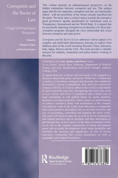 This volume presents an anthropological perspective on the hidden continuities between corruption and law. The authors argue that the two opposites, corruption and law, are inextricably linked - with the possibility of the former already inscribed into the latter. Taking a critical stance towards the normative good governance agenda spearheaded by institutions such as Transparency International and the World Bank, this volume argues that by uncritically depicting corruption as an absolute evil, these anti-corruption programs disregard the close relationship that exists between corruption and state power. Addressing various aspects of a complex and ambivalent phenomenon, Corruption and the Secret of Law draws on studies from different parts of the world including Burundi, China, Indonesia, Italy, Japan, Mexico and the USA and provides a valuable resource for students, researchers and policy-makers working in this area.