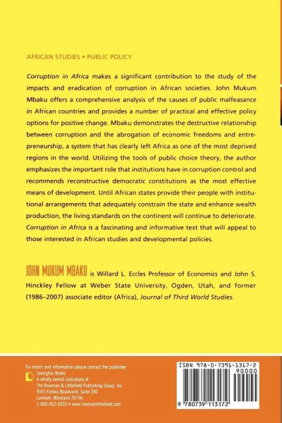 Corruption in Africa makes a significant contribution to the study of the impacts and eradication of corruption in African societies. John Mukum Mbaku offers a comprehensive analysis of the causes of public malfeasance in African countries and provides a number of practical and effective policy options for change.
