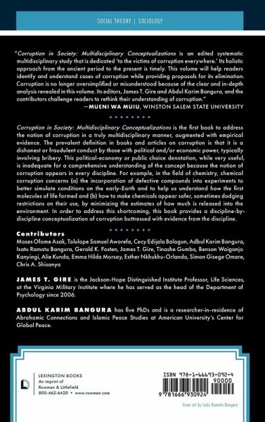 This book questions whether we really have a full enough understanding of corruption to craft holistic laws and policies to deal with it. The contributors provide a discipline-by-discipline conceptualization of corruption buttressed with evidence from the discipline to fill the gaps in the prevalent definition and understanding of corruption.