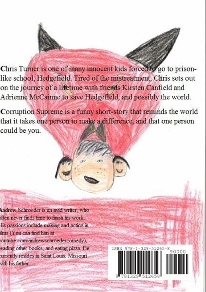 Chris Turner is one of many innocent kids forced to go to prison-like school, Hedgefield. Tired of the mistreatment, Chris sets out on the journey of a lifetime with friends Kirsten Canfield and Adrienne McCainne to save Hedgefield, and possibly the world. Corruption Supreme is a funny short-story that reminds the world that it takes one person to make a difference, and that one person could be you.