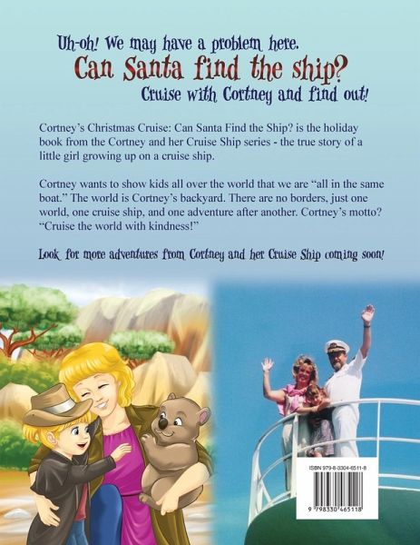 Cortney's Christmas Cruise: Can Santa Find the Ship? is the holiday book from the Cortney and her Cruise Ship series - the true story of a little girl growing up on a cruise ship. Cortney wants to show kids all over the world that we are "all in the same boat." The world is Cortney's backyard. There are no borders, just one world, one cruise ship, and one adventure after another. Cortney's motto? "Cruise the world with kindness!"