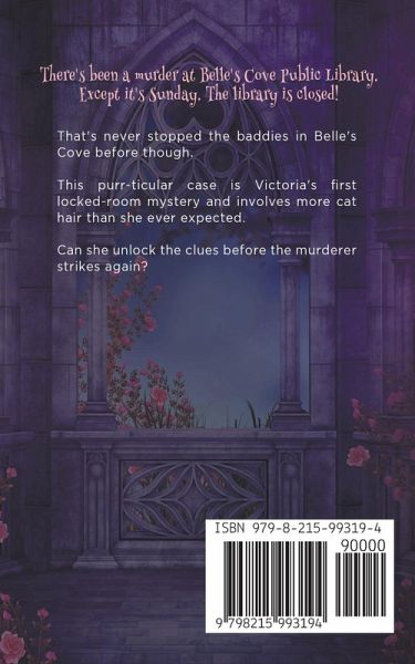 There's been a murder at Belle's Cove Public Library. Except it's Sunday. The library is closed! That's never stopped the baddies in Belle's Cove before though. This purr-ticular case is Victoria's first locked-room mystery and involves more cat hair than she ever expected. Can she unlock the clues before the murderer strikes again?