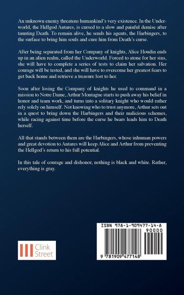 An unknown enemy threatens humankind's very existence. In the Underworld, the Hellgod Antares, is cursed to a slow and painful demise after taunting Death. To remain alive, he sends his agents, the Harbingers, to the surface to bring him souls and cure him from Death's curse. After being separated from her Company of knights, Alice Houdin ends up in an alien realm, called the Underworld. Forced to atone for her sins, she will have to complete a series of tests to claim her salvation. Her courage will be tested, and she will have to overcome her greatest fears to get back home and retrieve a treasure lost to her. Soon after losing the Company of knights he used to command in a mission to Notre Dame, Arthur Montague starts to push away his belief in honor and team work, and turns into a solitary knight who would rather rely solely on himself. Not knowing who to trust anymore, Arthur sets out in a quest to bring down the Harbingers and their malicious schemes, while racing against time before the curse he bears leads him to Death herself. All that stands between them are the Harbingers, whose inhuman powers and great devotion to Antares will keep Alice and Arthur from preventing the Hellgod's return to his full potential. In this tale of courage and dishonor, nothing is black and white. Rather, everything is gray.