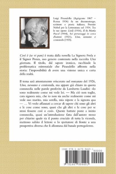 Così è (se vi pare) è un'opera teatrale di Luigi Pirandello, tratta dalla novella La signora Frola e il signor Ponza, suo genero. L'opera è incentrata su un tema molto caro a Pirandello: l'inconoscibilità del reale, di cui ognuno può dare una propria interpretazione che non può coincidere con quella degli altri. Si genera così un relativismo delle forme, delle convenzioni e dell'esteriorità, un'impossibilità a conoscere la verità assoluta che è ben rappresentata dal personaggio Laudisi. CONTIENE le edizioni integrali del 1918 e del 1925.