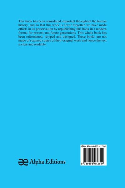 This book has been considered important throughout the human history, and so that this work is never forgotten we have made efforts in its preservation by republishing this book in a modern format for present and future generations. This whole book has been reformatted, retyped and designed. These books are not made of scanned copies and hence the text is clear and readable.